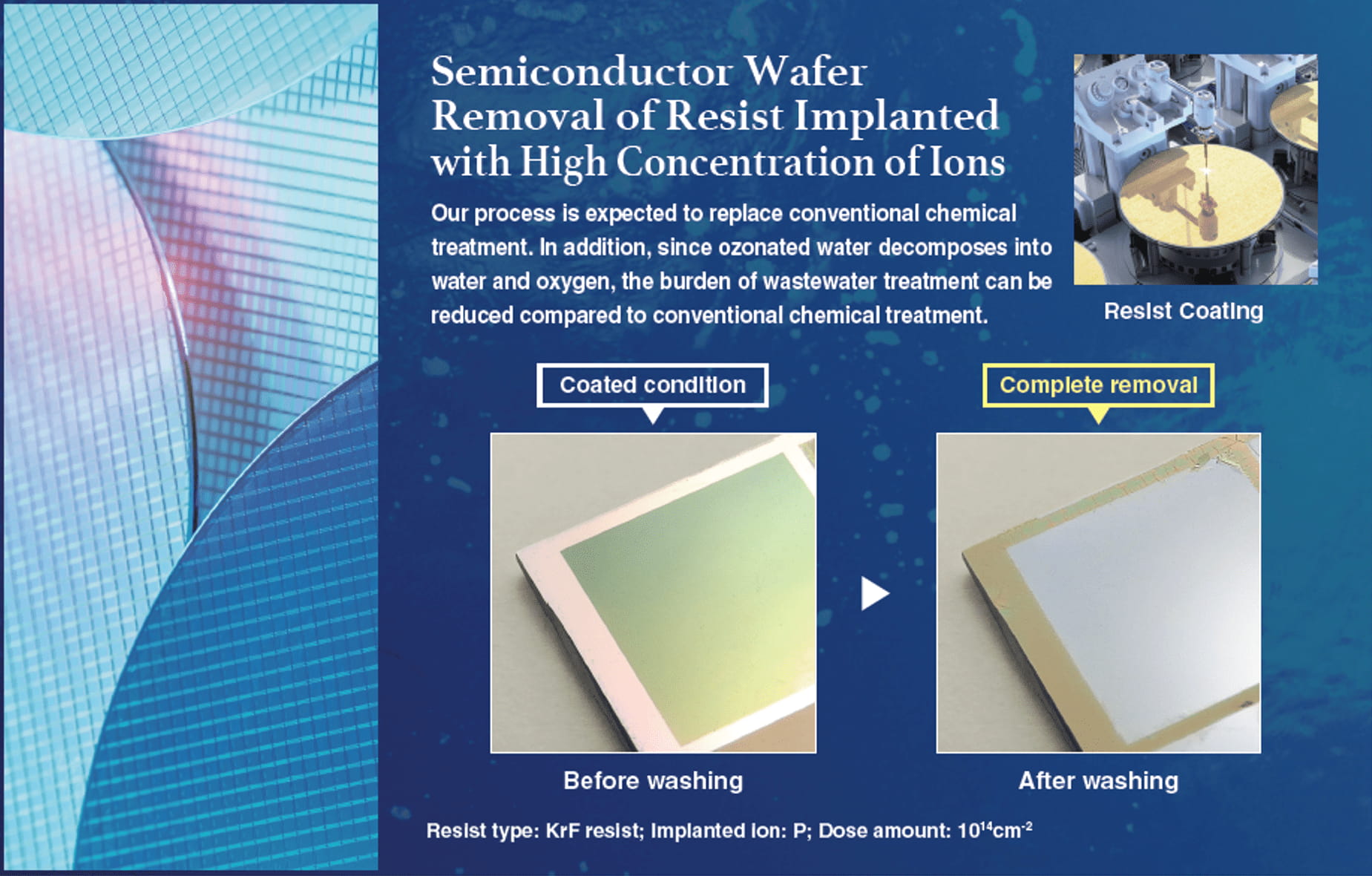 品牌:日本明电舍 介绍:开发了一种可以使用纯臭氧水实现的强大氧化促进方法,预计将在半导体工艺中用于去除高离子注入的光刻胶。 浓度:0.3~1.0升/分钟 特点:可产生臭氧水浓度高达400 mg/L或更高。 应用: 高离子浓度光刻胶去除的半导体晶圆